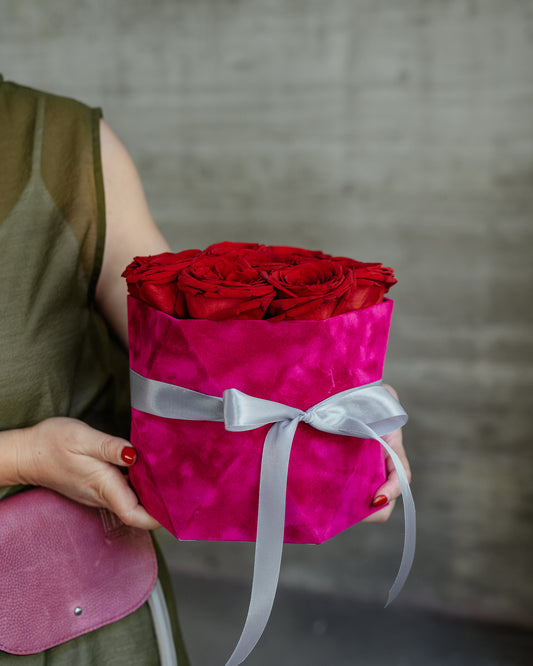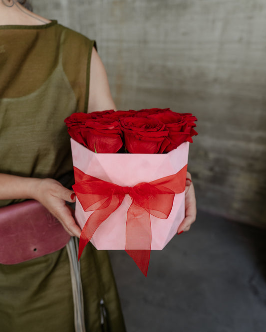 Cutie roz design diamant M cu 11 Trandafiri roșii