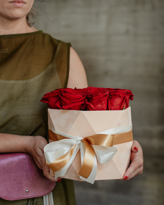Cutie crem design diamant M cu 11 Trandafiri roșii