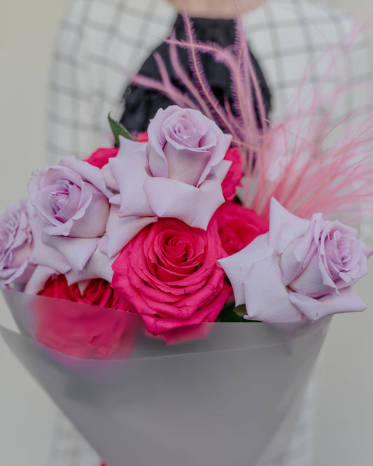 Buchet cu 9 Trandafiri țiclam și mov