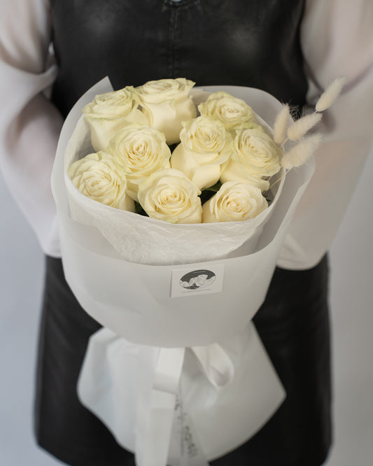 Buchet cu flori albe Trandafiri, Hortensii și Anemone