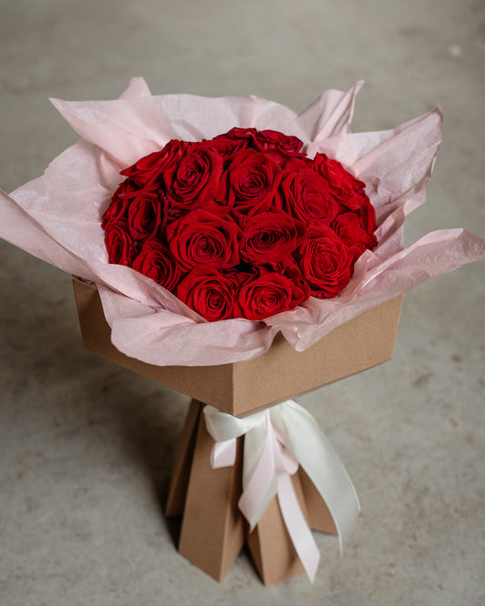 Buchet XL cu 25 sau 35 Trandafiri roșii în holder carton craft