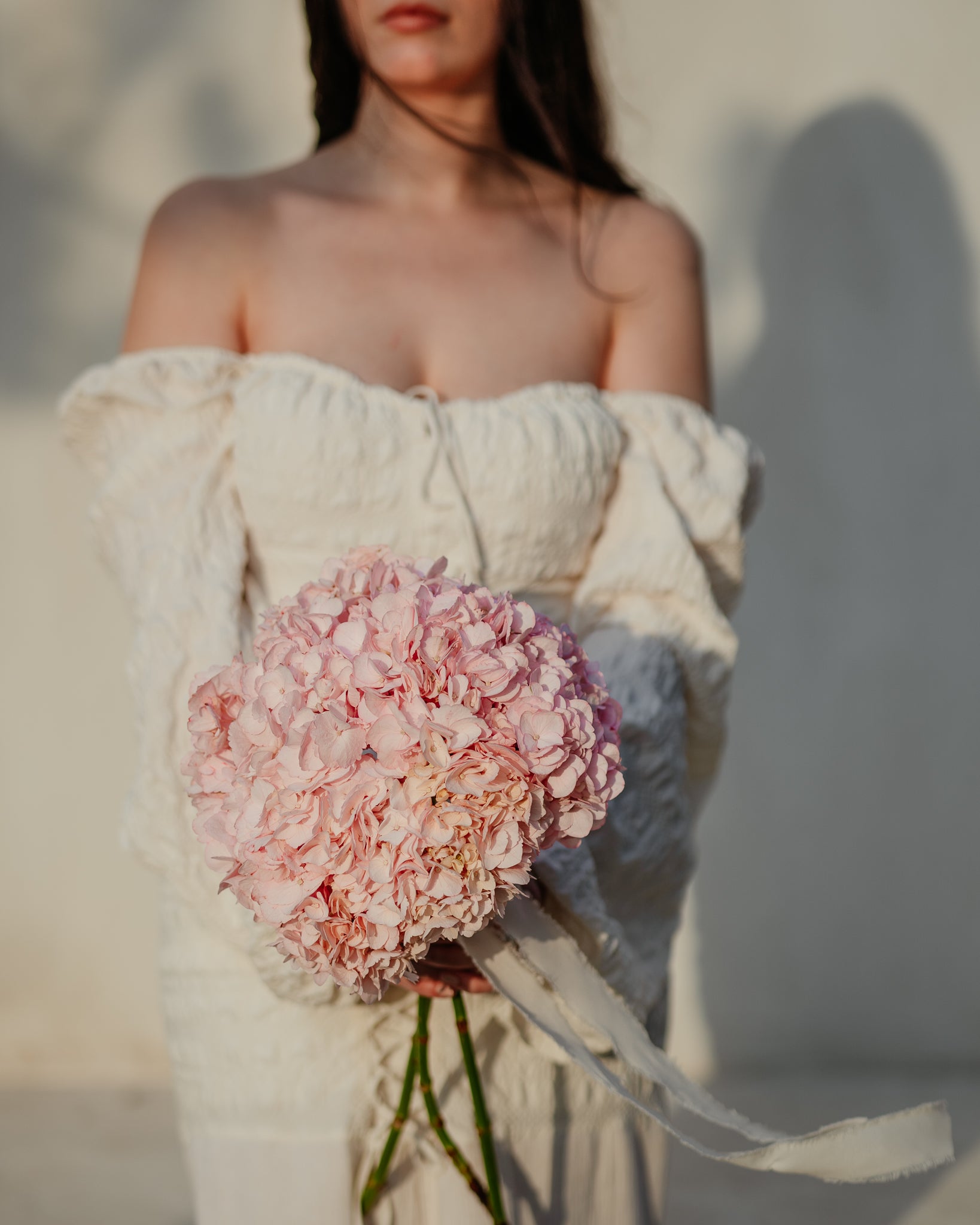Conținutul buchetului de mireasă: Hortensie, Panglică