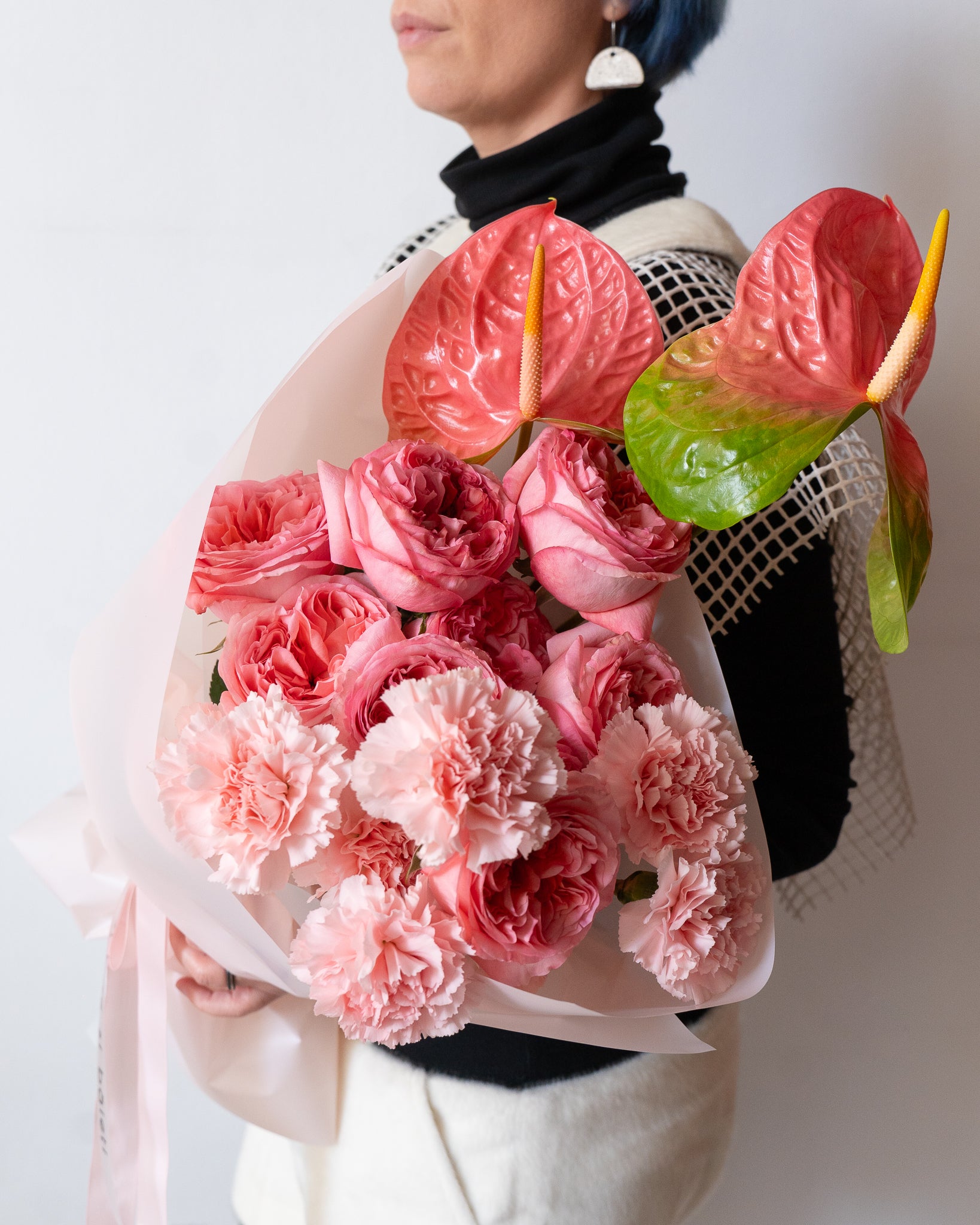 Conținutul buchetului: 9 Trandafiri, 2 Anthurium, 8 Garoafe.