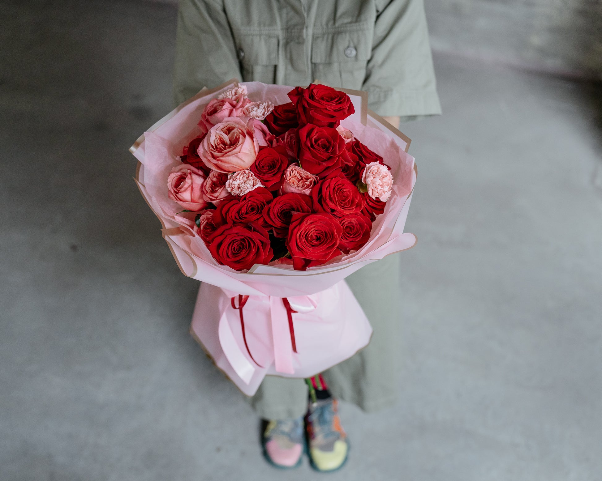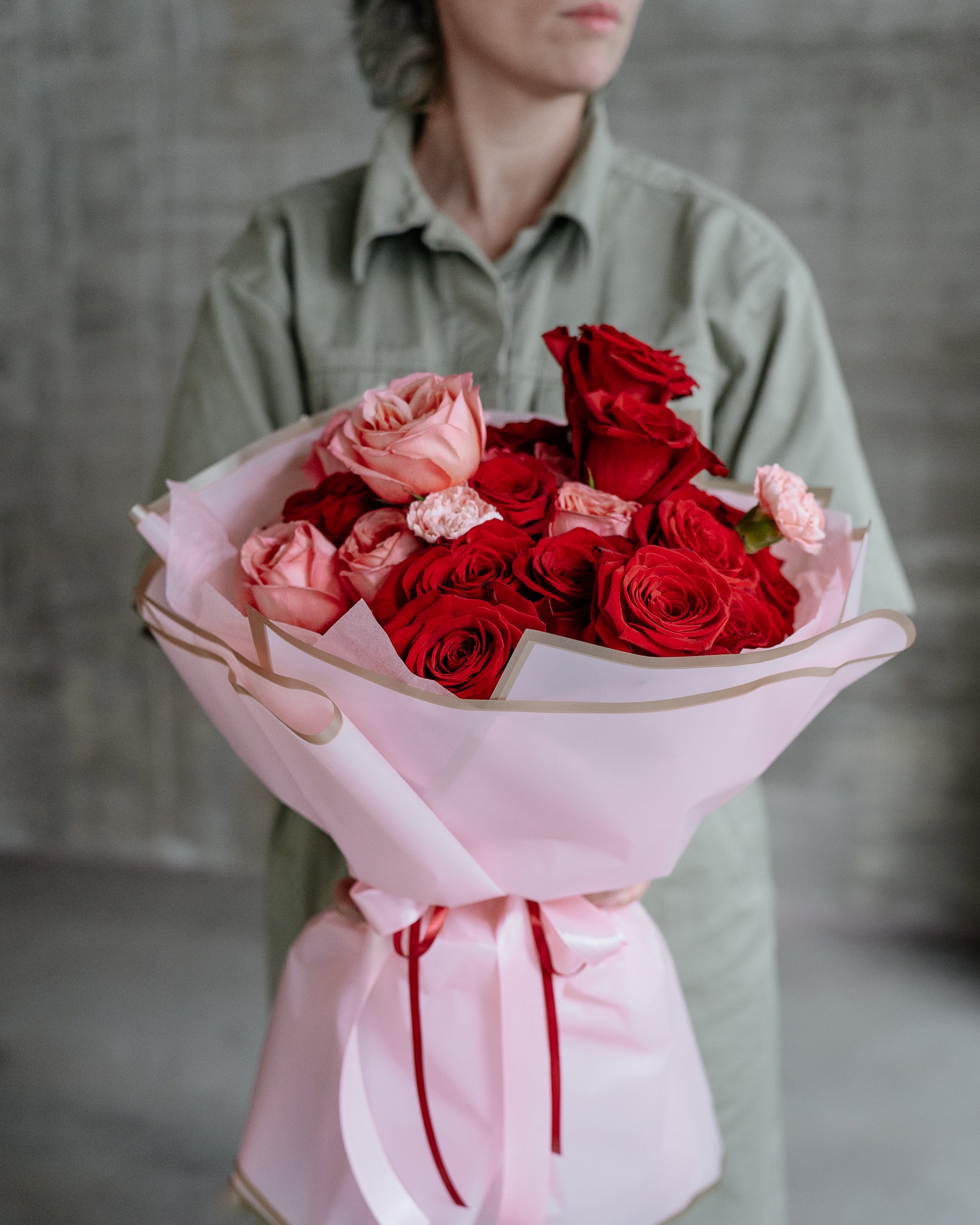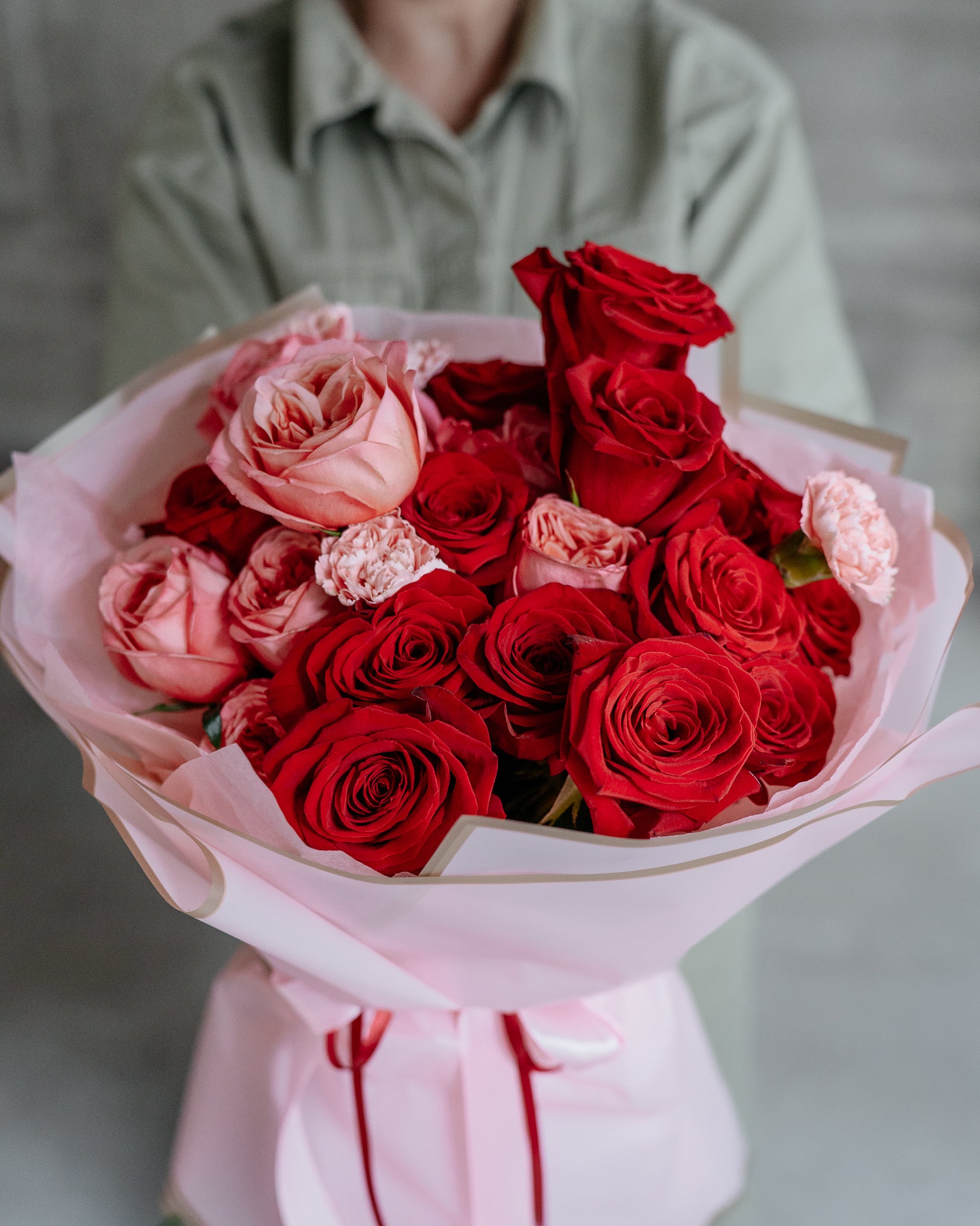 Buchet de Trandafiri și Garoafe, roșu-roz