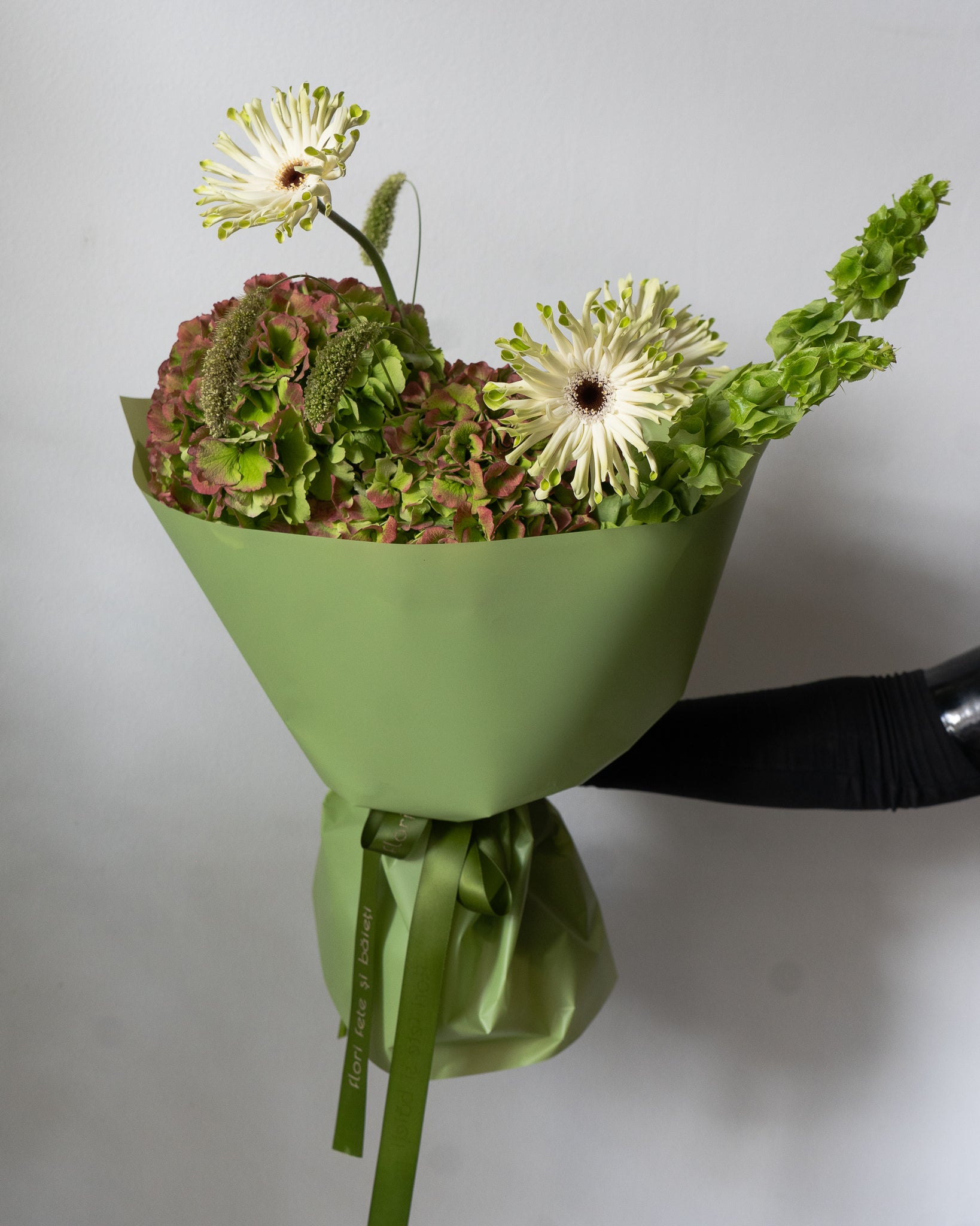 Buchet verde cu Hortensii și Germini