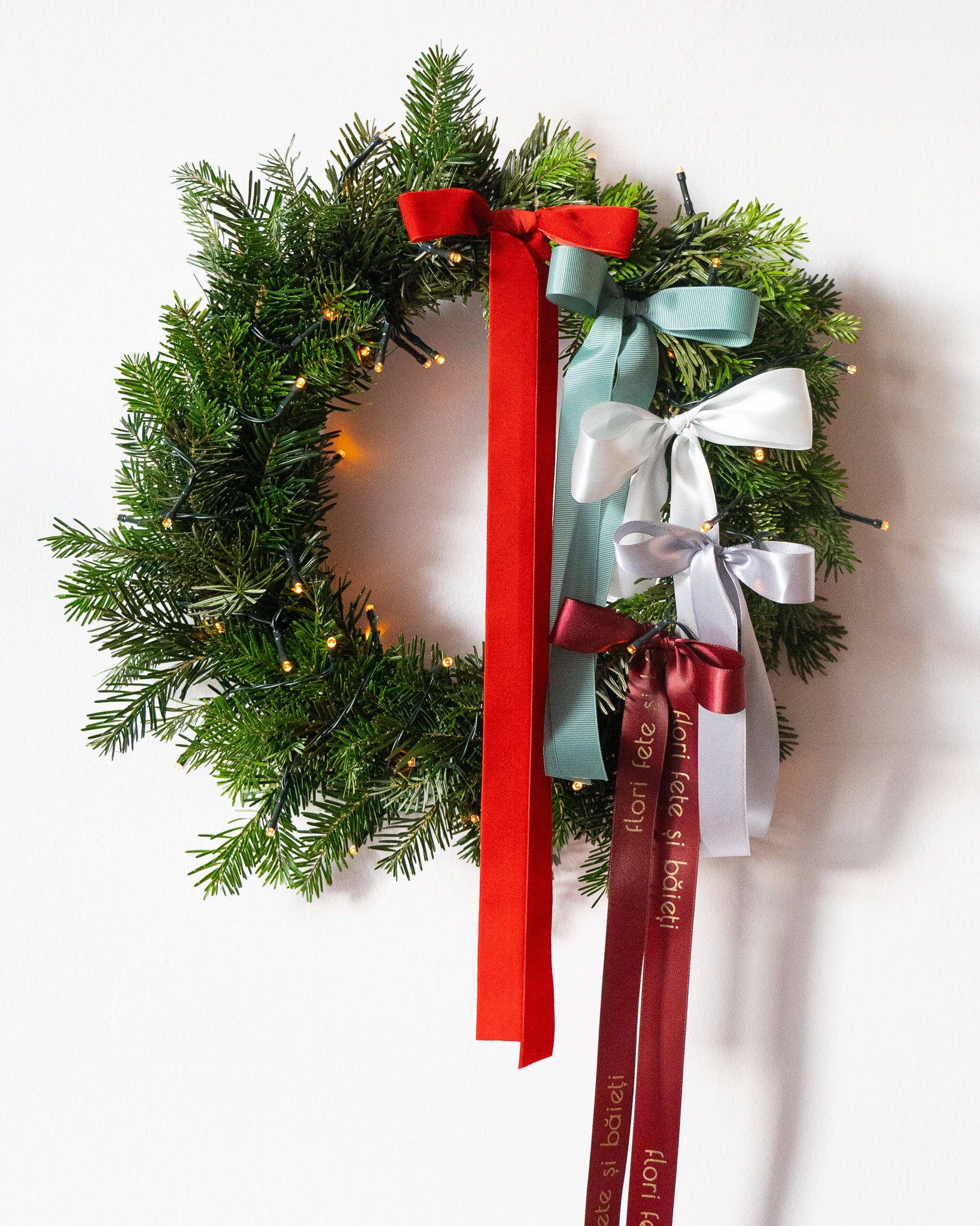 Conținutul aranjamentului: Brad, ghirlandă beculețe, fundițe. 35cm
