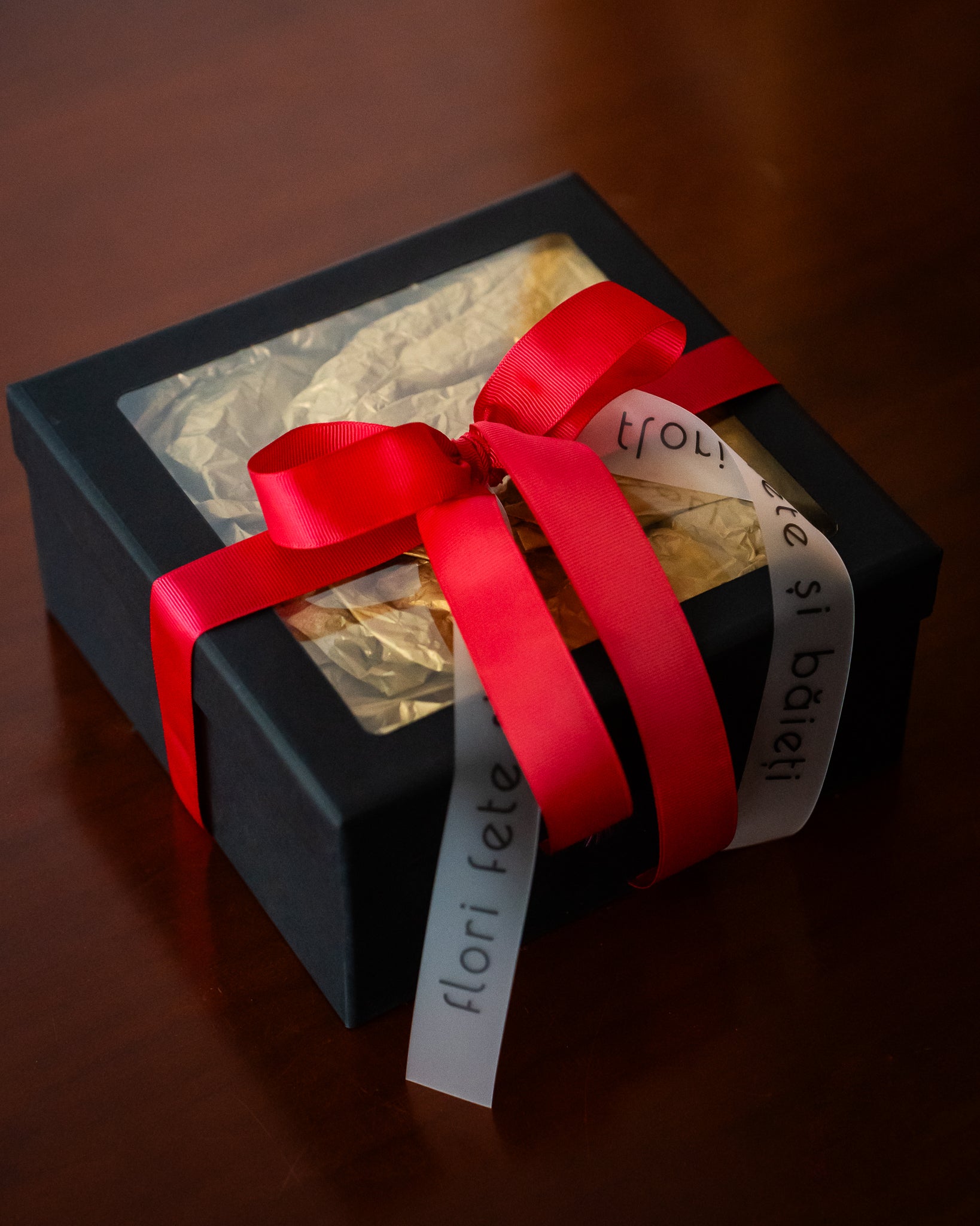 Opțional poți să ne ceri să trimitem împreună cu comanda o felicitare gratuită cu scris caligrafic. Completează mesajul de pe felicitare în formularul de comandă în câmpul observații.