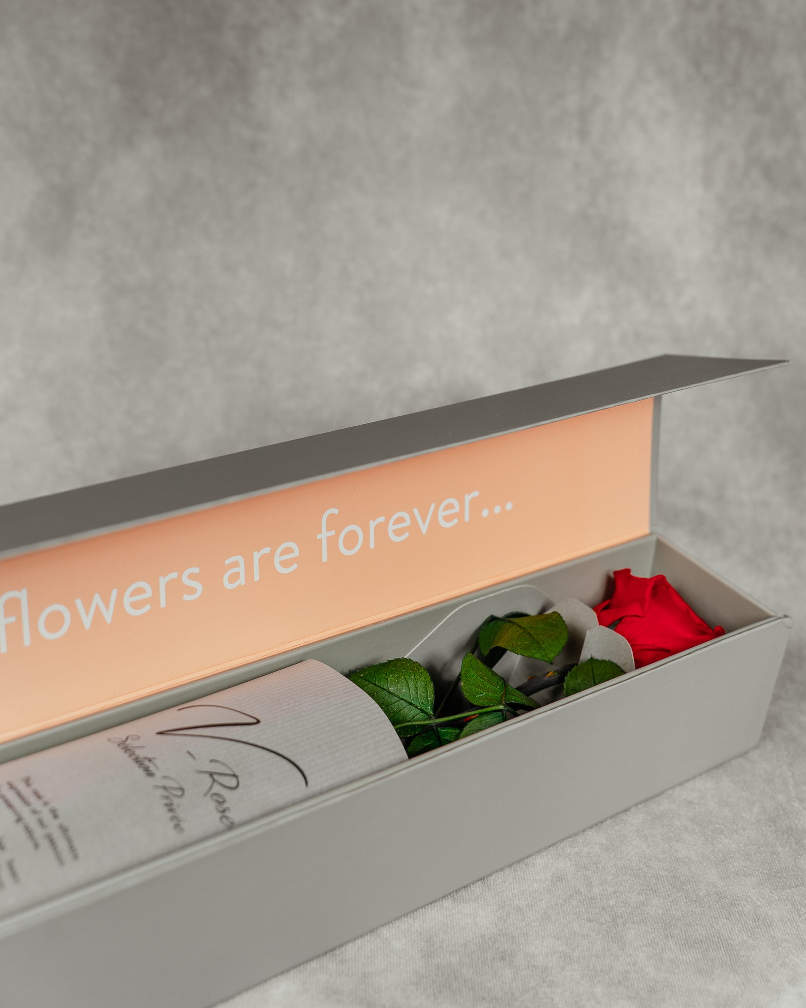 Conținut: 1 fir de Trandafir criogenat în cutie. Alege culoarea trandafirului.